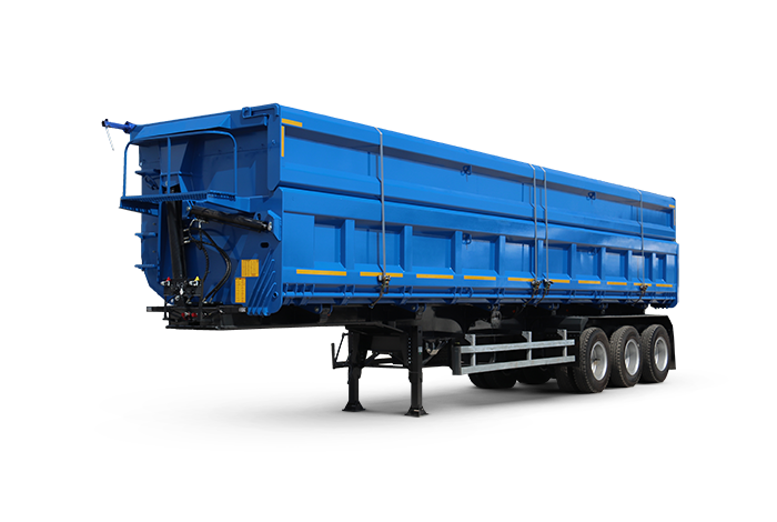 Трехосный полуприцеп-самосвал Тонар-95236. Грузоподъемность этой модели до 65 000 килограммов, объём - 61 куб.м.