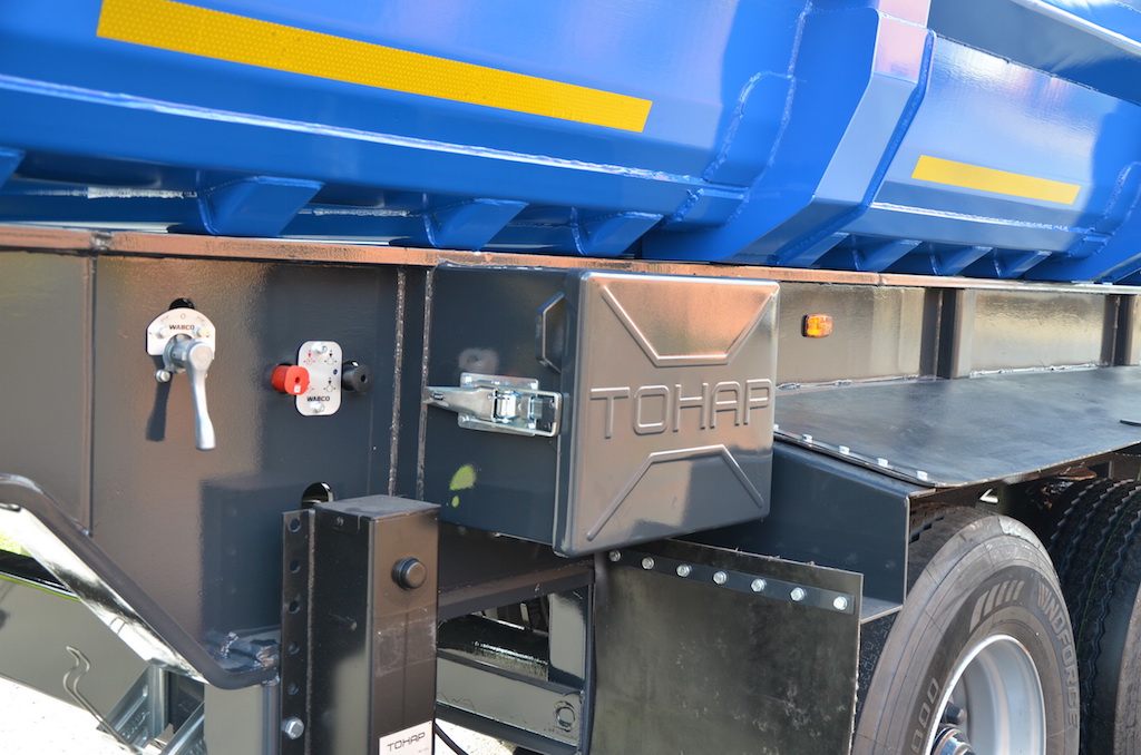 Полуприцеп-самосвал с боковой разгрузкой на левую сторону. Объём кузова 25,5 куб.м.
