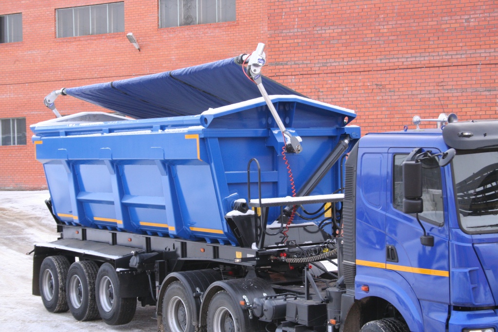 Полуприцеп-самосвал с боковой разгрузкой на правую сторону. Объём кузова 25,5 куб.м.