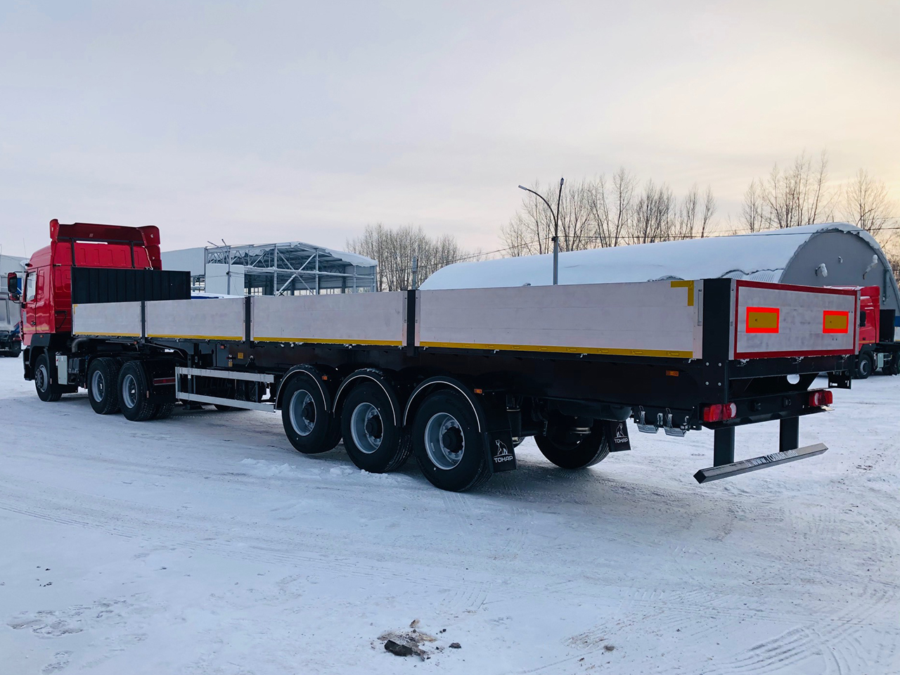 Отгружен бортовой полуприцеп Тонар B3-13/K в обновленном исполнении с алюминиевыми бортами, в базовой комплектации полуприцеп укомплектован стаканами под коники в количестве 22 шт.